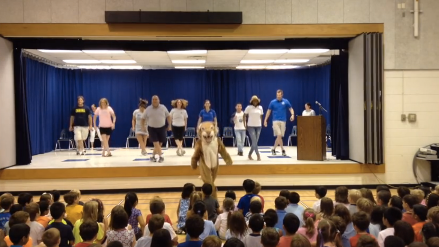 Earlier this week, Fairfax County Public Schools revealed a video of teachers at Churchill Road Elementary School surprising students at the end of an assembly with a choreographed dance led by “Winston,” the school’s Bobcat mascot.