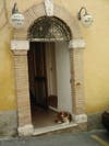 Second stop was Perugia, in the Umbria region. Smaller, less crowded and more charming than Florence, with a younger, hipper crowd, and a lot of students. I saw many more dogs here, including some much larger ones. Here the pooches seemed more laid back and outgoing. Sitting outside the Sandri Pasticceria near Fontana Maggiore provided outstanding people- and dog-watching. The Hotel Morlacchi where I stayed was where I met Jessie, the mixed breed house dog rescued from the streets by Loriana, the proprietor. She named Jessie after the movie character Jessica Rabbit, because of the way she preens and prances. Jessie's job is to watch the front door and greet hotel guests — and to lay in the sun, relaxing. All of which she does quite competently.