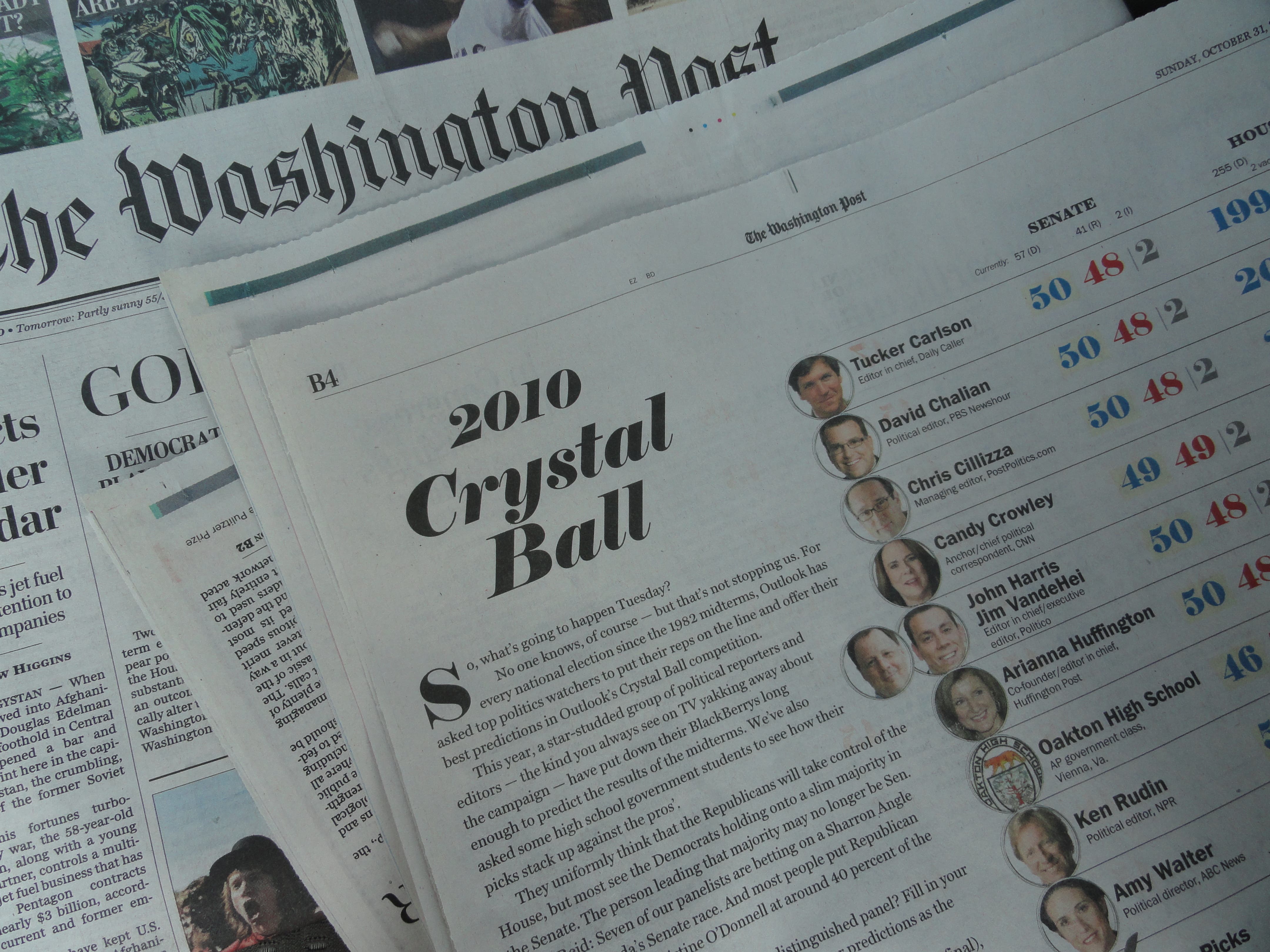 The students are taking part in The Washington Post's 2010 Crystal Ball, where pundits try to predict the outcome of the election.