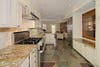 The 10-foot by 21-foot kitchen includes top-of-the-line modern appliances such as an Imperial six-burner gas stove and a Sub-Zero refrigerator. But, its roots to the past are reflected in a striking patterned floor crafted of slate taken from the property’s old carriage house. The kitchen, which connects to an open family room with a fireplace and an exposed original brick wall, has granite countertops and light-colored, paneled cabinets. “It was important to me that the kitchens in each of the units be different, so you wouldn’t walk into one unit and see it had the same kitchen as another,” St. Pierre noted.
