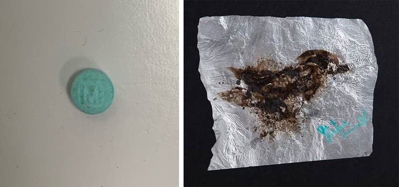 The city released an image of a small blue pill that was intended to look like an authentic M30 tablet. The Drug Enforcement Administration warns that counterfeit pills like this can be dangerous because they appear to look like prescription pills but can be lethal. The picture shows burnt tin foil, which is used for the inhalation of the pills.
