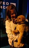 PHOTO: Abbie Hubbard, AWLA deputy director, meeting one of the puppies upon its arrival to the airport, from South Korea. HSI photos