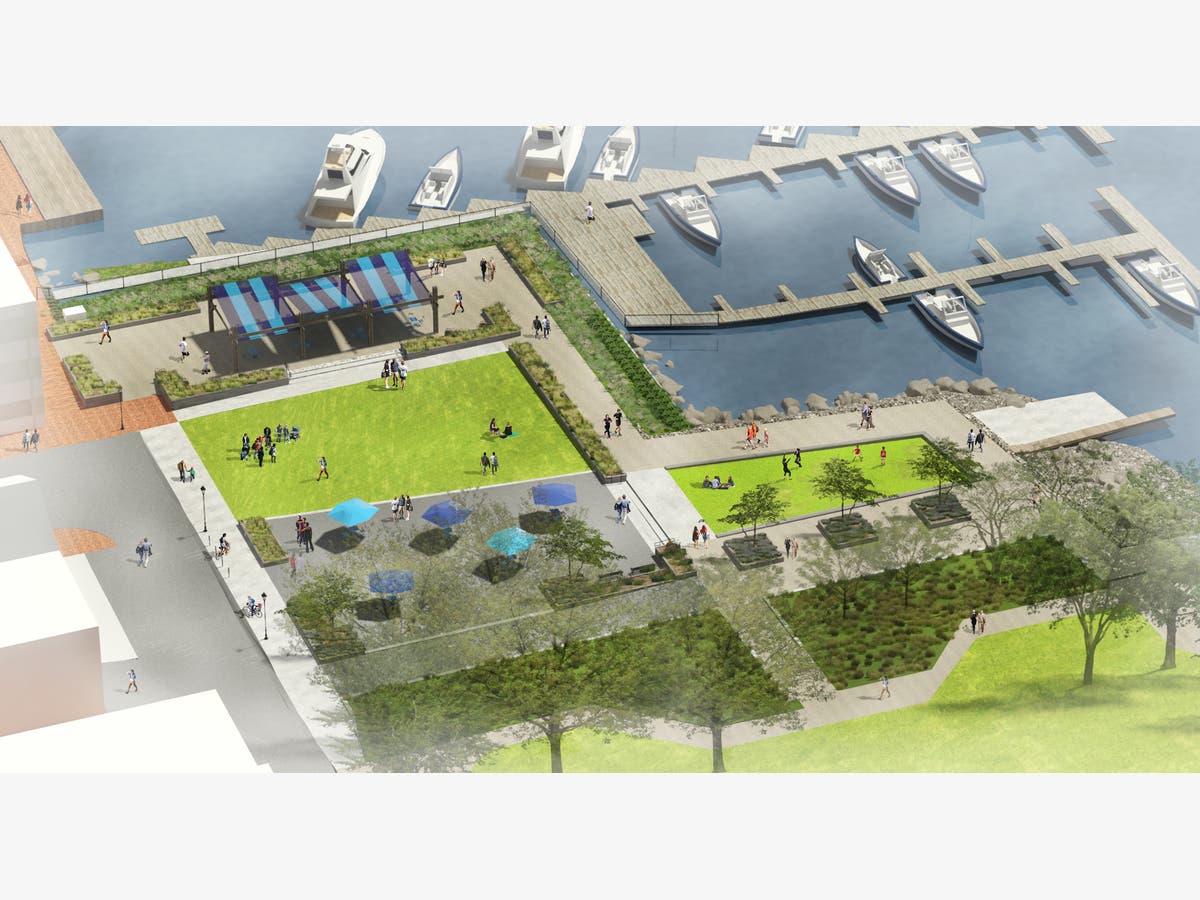 Construction is underway for the new park, at the site of the original King Street park along with the former Old Dominion Boat Club building and parking lot. It will feature a plaza, waterfront promenade, shade structures, and a space that can be converted for different seasonal uses. No opening date has been announced.