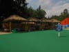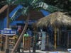 The resort-like environmnent was lined with Astro turf, which made the sun-burned walkways a little more comfortable beneath our feet. The bright green synthetic grass was striped with outstretched lawn chairs. Enormous, brightly colored, Dr. Seuss-like umbrellas, dotted the perimeter of each of the pools. The umbrellas are so expansive that they cast enough shade to cool a couple of families or clusters of people.