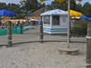 The park also features a sand box and a large, partially enclosed play structure for kids three to 12 years old. Laced with tubes, tunnels and various climbing apparatuses, provides a dry alternative to wet play.