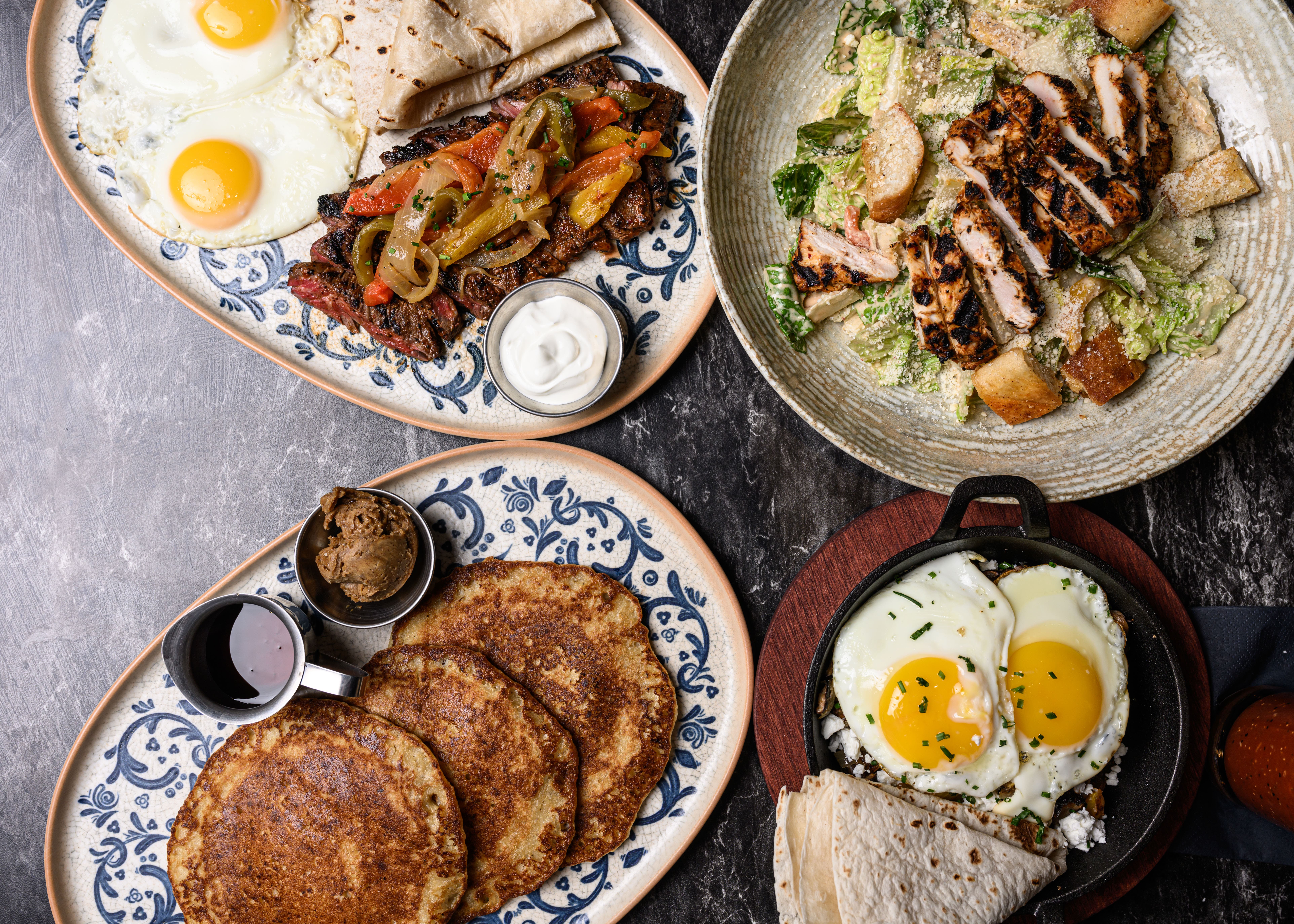 The new menu keeps some of the original Royal Restaurant classics dating back to 1904, including the Royal Breakfast, Classic Belgian Waffle with whipped butter and maple syrup, and the traditional Greek Omelet with home fries and toast. A few all-day brunch options include Crispy Fried Chicken Thighs with chorizo gravy and Steak & Eggs marinated in guajillo. Lunch and dinner highlights include Country Fried Steak with crispy potatoes and mole-spiced carrots, Prime Brisket Meatloaf with mashed potatoes, sweet and sour charred corn relish, burnt onion gravy and crispy onions, the“Club Sandwich” Torta on ciabatta, and the Green Chili Cheeseburger with roasted green chili, escabeche onions, bacon, sharp cheddar, and deli mustard. Diners can end the meal with dessert options like Roasted Apple Chimichangas and Ancho Chili Chocolate Mousse.