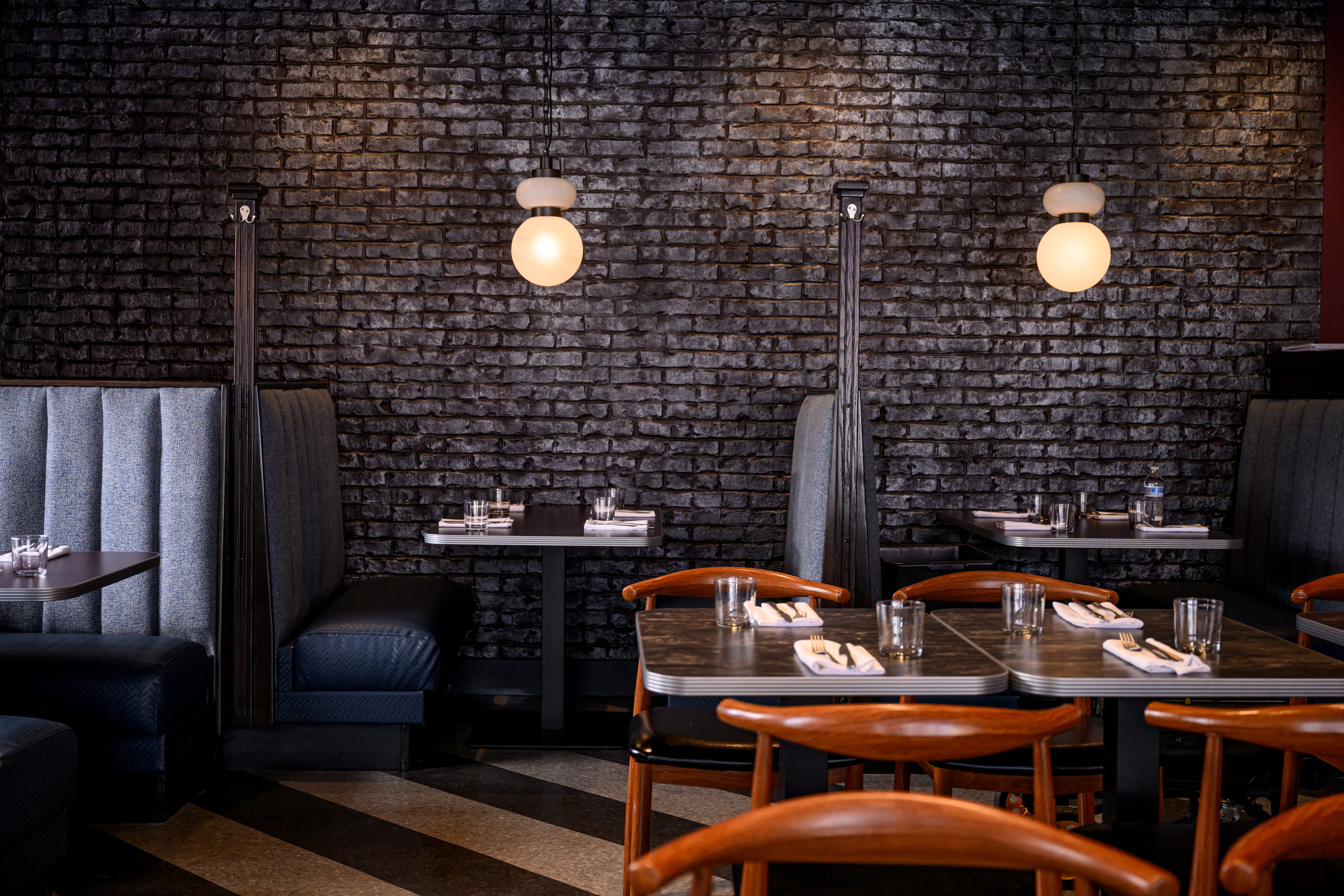 The renovated space pays homage to Royal Restaurant's history while adding modern features, according to the owners. The interior has upcycled booths, marble top diner tables, a 16-seat meeting room and walnut-colored bar. A new feature of the restaurant is a 56-swat outdoor patio with an overhead retractable awning.