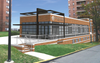 The applicant is proposing to construct a clubhouse building between two existing 11-story residential buildings. As a result, approximately 50 percent of the clubhouse is hidden from view on Washington Street by the two buildings.