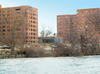 The Hunting Point on the Potomac apartment complex was built in the late 1940s and early 1950s and was originally comprised of three apartment buildings. The Virginia Department of Transportation purchased the property to construct the Woodrow Wilson Bridge, demolishing one of the buildings in the process. The Virginia Department of Transportation retained ownership of the two remaining building containing approximately 530 units.