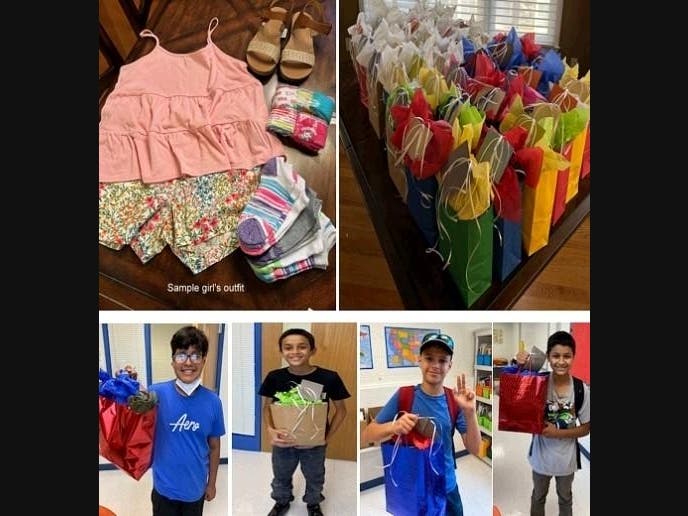 Assistance League of Northern Virginia’s New Clothing for Kids Program strives to help improve students’ self-esteem by ensuring they have clothing appropriate for the seasons. The nonprofit provided more than 3300 pieces of clothing and more than 200 pairs of sneakers during the past school year to meet that goal. Those items included sweatshirts, sweatpants, leggings, shirts, sweaters, underwear, socks, and sneakers, as well as winter jackets, hats, gloves, and scarves. Assistance League’s marvelous fashionistas were not satisfied with those impressive statistics and devised an ingenious way to end the school year for a few select students. The New Clothing Team wanted to provide complete outfits to six students at each of the schools they serve to help those pupils get a jump on summer. School contacts provided specific sizes and color preferences for their students who might have had an especially challenging year, experienced great hardship, or needed an extra ‘pick-me-up.’ With those details, the Clothing Team purchased complete outfits for the students selected by the school counselors: shirts, shorts or pants, shoes, underwear & socks. They put those items in colorful gift bags and included a personal note to each student wishing them a good summer and hoping they enjoy their clothing.