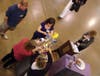 Arts donors competed in a relay-style sculpture competition using recycled materials.
