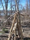 After over a year of this collaborative bliss, a “critic” had the nerve to enter the picture! It began shortly after Christmas of 2012 when some “Grinch” started slaughtering my artistic endeavors. Instead of rounding each bend on the path with high hopes of finding something new and amazing, my heart was filled with dread. Not only did it boggle my mind that someone couldn’t appreciate the beauty of my work, but that they could be so malicious as to break limbs or fling the branches to the nether regions of the marsh.