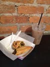 The selection is small, but they do offer one vegetarian butternut squash crust empanada. This butternut squash empanada offers a light and fluffy crust with an average, and slightly under seasoned filling. It's just one critics opinion that the vegetables inside might not have been used at their peak afresh. If you're feeling a little thirsty Killer E.S.P. offers several iced and hot coffee and tea drinks which can be made with soy milk upon request. Although their chai latte comes from a box is still quite flavorful and delicious on a warm summer day.