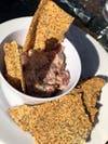 - The Ahi Tuna Tartare Dip (Sesame Crackers, Wasabi Sauce, Ginger). This sounded like a can’t miss but it fell flat in flavor and was difficult to eat – the sesame crackers didn’t hold up to the chunky tuna. I wonder if something in the pita chip family would serve as a better vehicle. Disappointed in this dish but I’m an ahi tuna lover so we’re hoping it was just not a great day and plan to order it again another time.