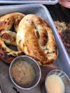 - The Brisket Tacos (Onions, Cilantro, Taco Sauce, Avocado, Cotija Cheese +Gluten Free). Delicious! Really flavorful and three tacos are plenty for a group to sample or to serve as a light meal for one. We’ll look for these again next time – and we’ll want to try the shrimp and vegan (Avocado, Roasted Corn, Black Beans, Jalapenos, Sesame Seeds, Slaw, Taco Sauce) tacos, too!