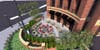 Just beyond the dining area is the exterior plaza referred to as ”The Garden.” Inspired by the Yates family tradition of maintaining a bountiful garden in their backyard, this area is bounded by a richly landscaped border with lush flowers and low brick wall providing an urban oasis. The Garden seats 68, with a fire pit at the center to extend the season for outdoor dining well into colder times of the year.