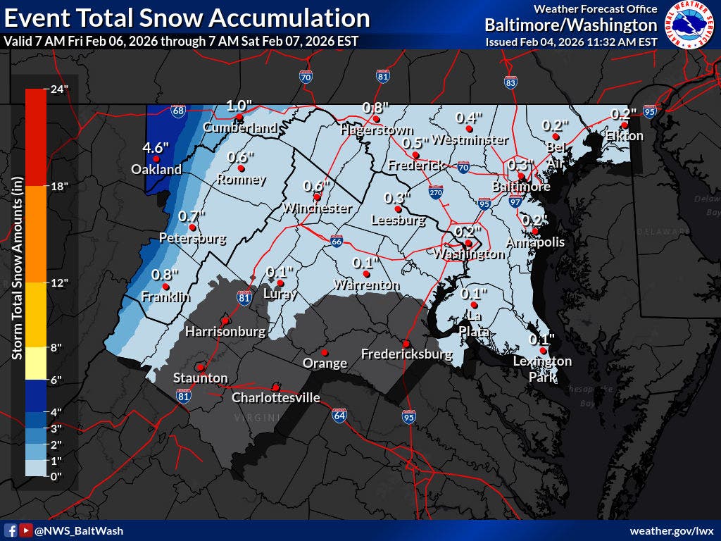 While the greatest chance for snow will likely be in western counties, where winter storm watches are in effect Friday into Saturday, the D.C. region could still see some accumulation, especially along and north of Interstate 66/Route 50.