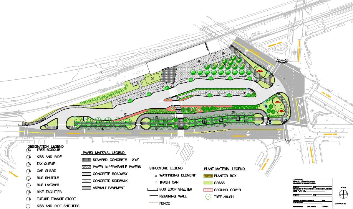 - Designated areas for kiss and ride, shuttles, bicycle parking, ride sharing and taxi
