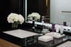 The shower will become a focal feature as it radiates a subtle opaque white light. Guest bathrooms will integrate sustainable features including LED lighting in the oversized mirrors as well as custom polished chrome low-flow, water-saving fixtures.