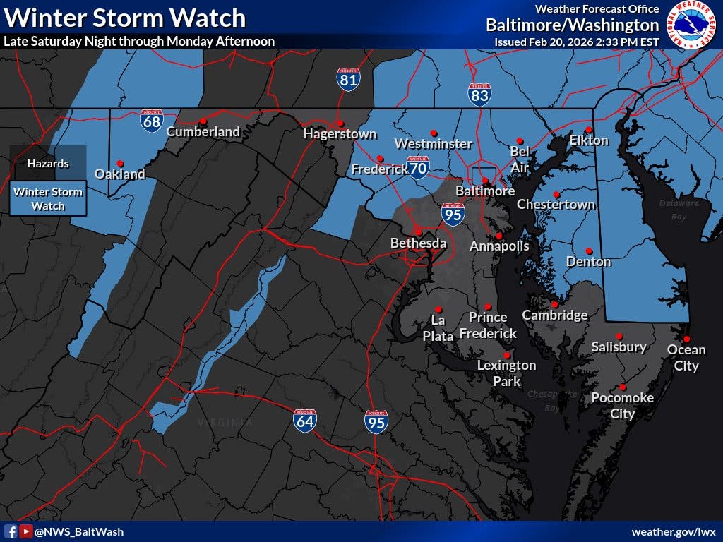 Currently, the watch is in effect from Sunday afternoon to Monday morning for Loudoun County, though snowfall estimates have increased for other counties in the region, according to the National Weather Service.
