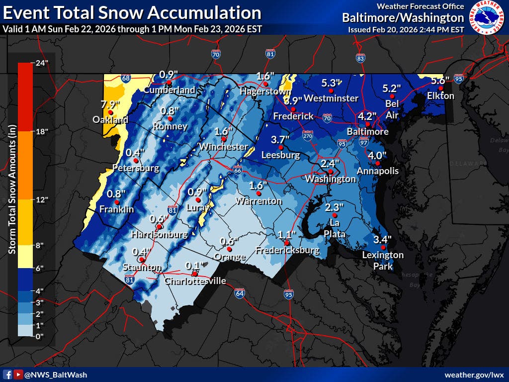 Snowfall Totals Increase For Parts Of NoVA, Winter Storm Watch Issued