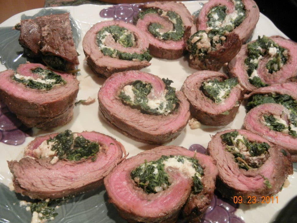This dish was absolutely incredible. It was very tender and quite flavorful. There was so much flavor in every bite, and the steak was so juicy and tasty. The combination of the marinade, spinach, onion and feta cheese made this a delicious and impressive flank steak recipe that was a huge hit.