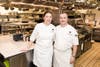 - Christophe and Michelle Poteaux stop for a photo in the kitchen