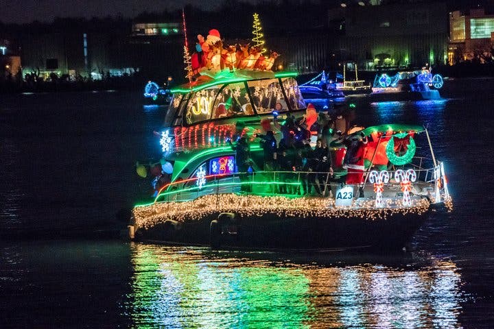 ALEXANDRIA, VA — A record number of 60 boats lit up the Potomac River waterfront in the 20th annual Alexandria Boat Parade of Lights on Saturday, Dec. 7. Thousands of spectators descended upon waterfront viewing areas for the holiday tradition.