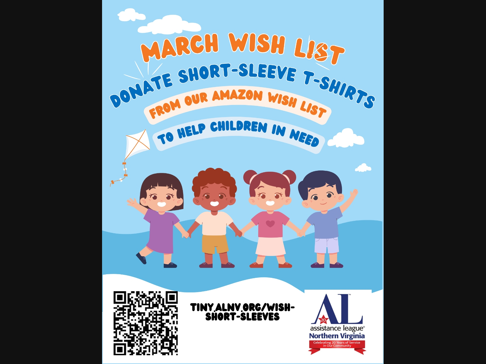 The March Wish List features many kinds of short-sleeve shirts for spring and summer. Use this link https://tiny.alnv.org/wish-short-sleeves to make your selection or scan the QR code on the flyer. Please select Assistance League of Northern Virginia as the shipping address to ensure prompt delivery. If you would prefer not to order through Amazon, you can pay by personal check for these items. Please send your check, made out to ALNV, to P.O. Box 209, Herndon, VA 20172 and include "Wish List/month" in the memo line (e.g., if you order in March, please write Wish List/March.)
