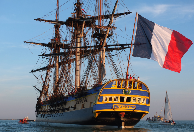Hermione is an exact replica of the ship that brought the Marquis de Lafayette to George Washington with news of full French aid in 1780, helping turn the tide of the American Revolution.