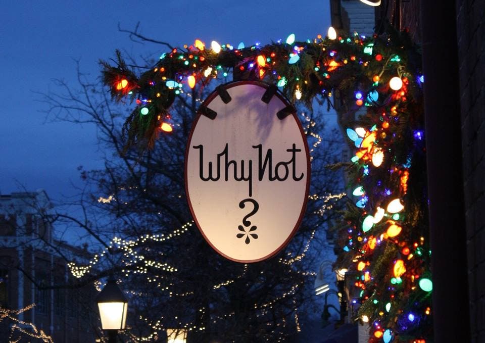 The store, which features a hand-painted sign out front with the words “Why Not?” has been known through the years for its imaginatively decorated windows for every holiday. The Why Not Shop also graciously worked with school fundraisers, donating special items from the store for auctions and also allowing Girl Scouts to sell cookies on its busy corner.