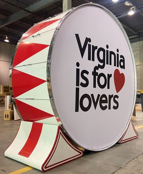 For the Landmark Mall scene, the Virginia Film Office worked with Warner Bros. to include a seven-foot-tall drum prop with the Virginia is for Lovers logo. Warner Bros. also created a promotional video for Virginia Tourism showing set piece in action, and star Gal Gadot and director Patty Jenkins spoke about their time in Virginia.
