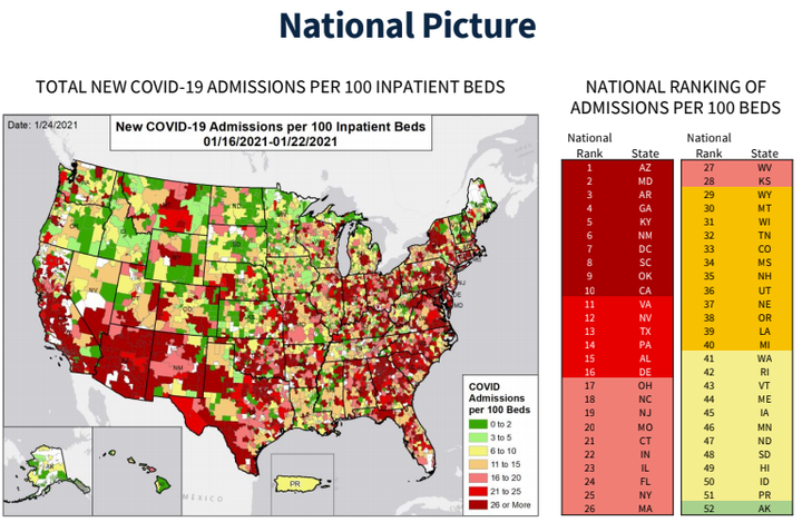 - The state ranks 11th among the states for COVID admission to hospitals