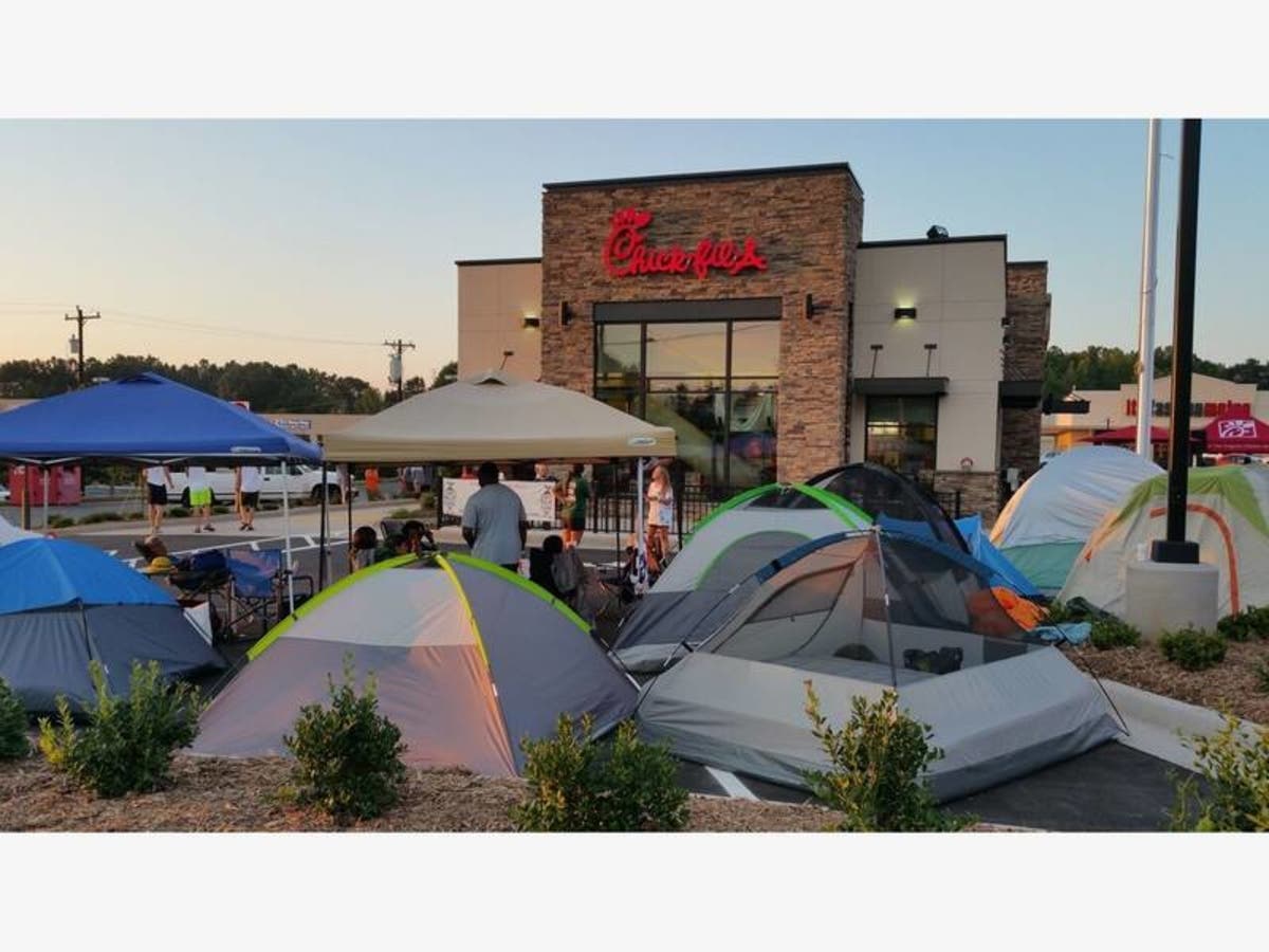 "To celebrate, Operator Larry Everett is awarding a years supply of meals to the first 100 in line when he opens Thursday morning but campers were allowed to start lining up officially at the 24-hour mark," reads a statement. "They will be hunkering down for the next 24-hours passing the time while being hosted by Chick-fil-A. They will be fed breakfast, lunch and dinner with an evening snack. Games, entertainment, prizes and a block party with a lip sync battle in the evening that will also help pass the time."