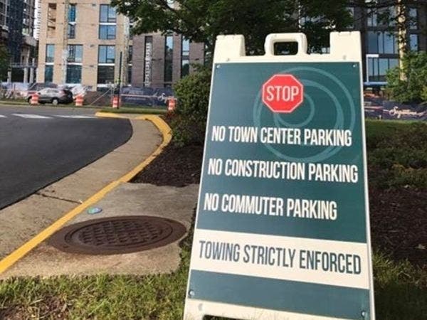 Patch reported Thursday that locals were complaining that construction workers at Reston Town Center don't appear to have access to RTC garages and are therefore parking on nearby streets, prompting at least one business to put up a sign telling them not to park there.