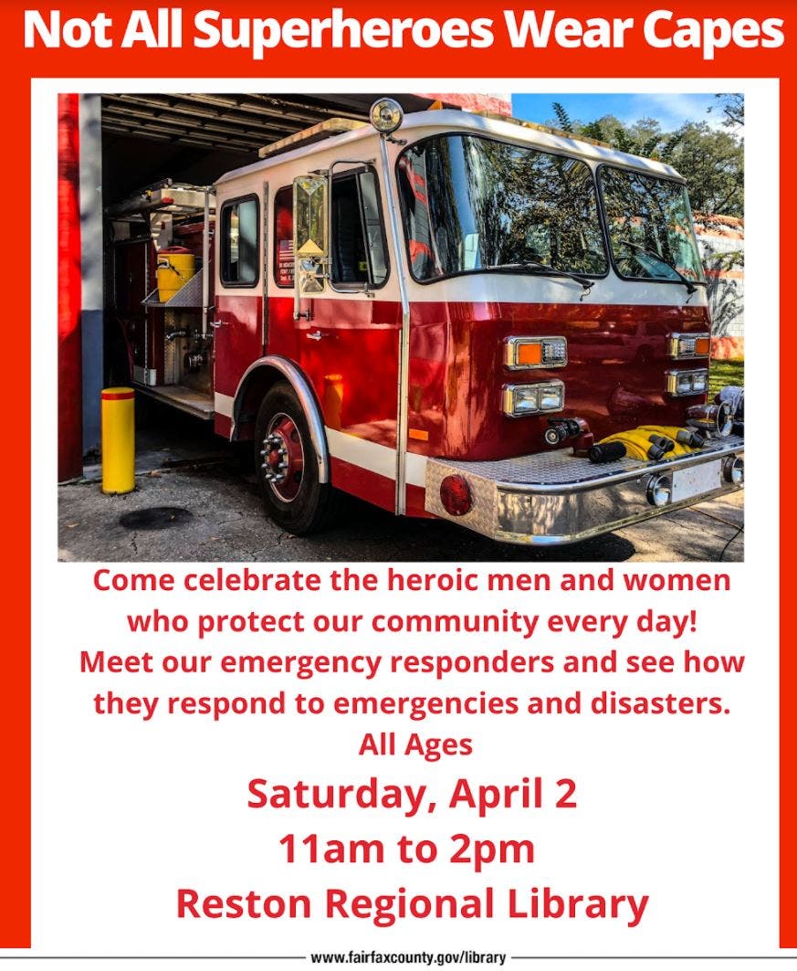 Reston Regional Library is holding a celebration of first responders, giving families a chance to meet the people who handle emergencies.