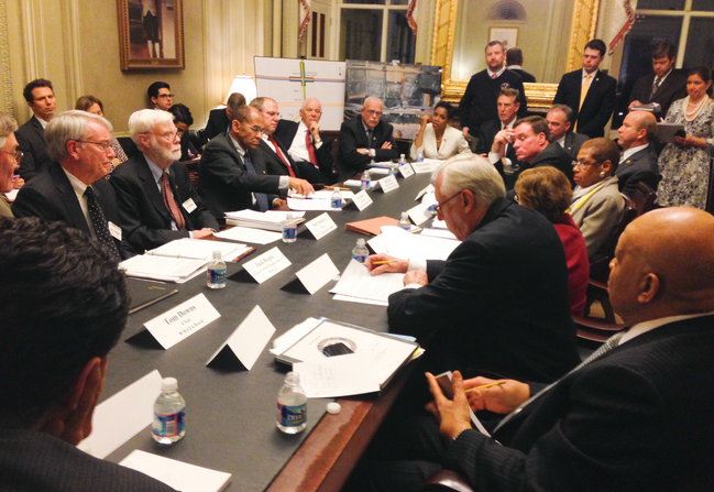 PHOTO: Members of the D.C.-area congressional delegation receive a briefing by the NTSB and WMATA on the fatal Yellow Line incident on Capitol Hill. Photo courtesy of Connolly’s office.