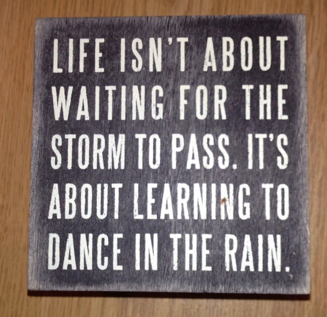 On my desk is a little wooden box Roz gave me recently. On the lid are these words – “Life isn’t about waiting for the storm to pass. It’s about learning to dance in the rain.” Whenever I sense that I am about to let fear, planning or other obsessions get in the way of dancing, I open the box and deposit the dysfunctional thoughts – and I am free.