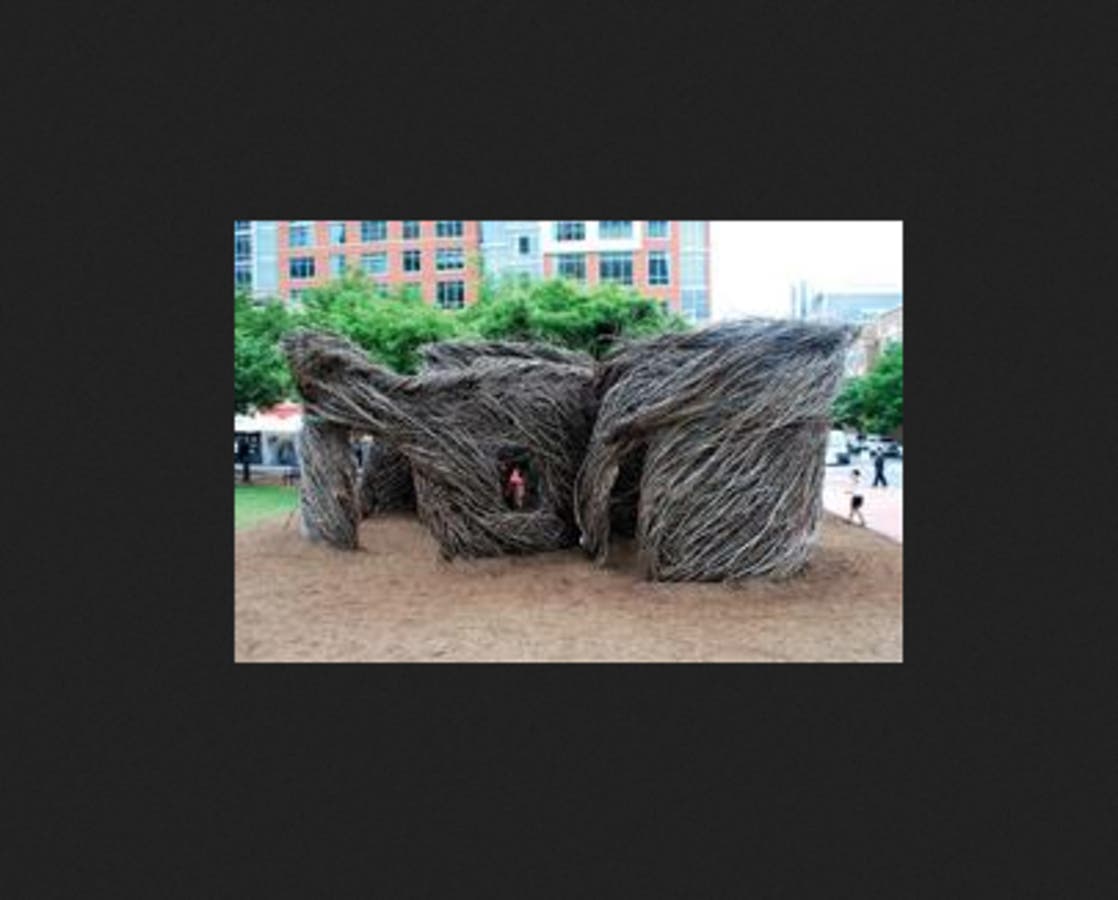 "This monumental, site-specific, temporary sculpture at Reston Town Square Park was created by internationally acclaimed artist Patrick Dougherty in 2015 and has been providing the community an immersive and magical experience since its installation," the statement from Greater Reston Arts Center reads. "The work’s popularity with adults and children has been manifested in thousands of games of tag and hide and seek played within its woody realm.This project was a communal, participatory experience both through its funding and installation. Sculptor Dougherty spent weeks on-site constructing the sculpture in tandem with a team of community volunteers who contributed enormously to the creation process."