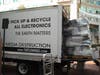The trucks were packed with an array of no-longer-wanted electronics, including computers, DVD players, fax machines, cell phones and TVs. Instead of going to a landfill, most of the haul will be recycled and reconstructed. Items that absolutely can't be re-used will be compacted to make their "footprint" a bit smaller.