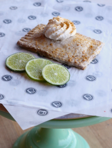 The tart pop tart is filled with key lime custard and topped with meringue, lime glaze and graham cracker crumbs.