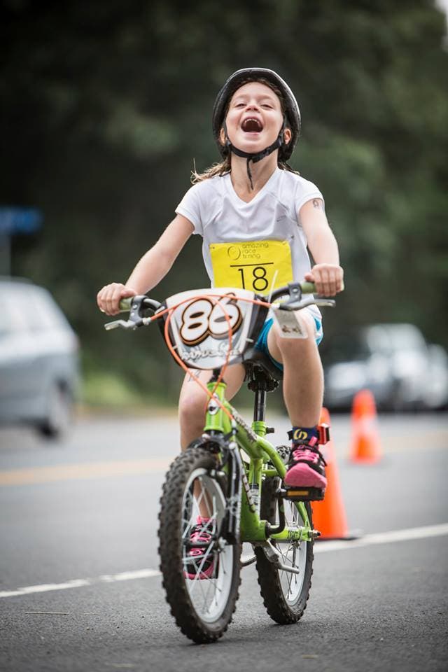 Participants competed in one of three age groups (6-8, 9-11 and 12-4) with various swim, bike and run distances.