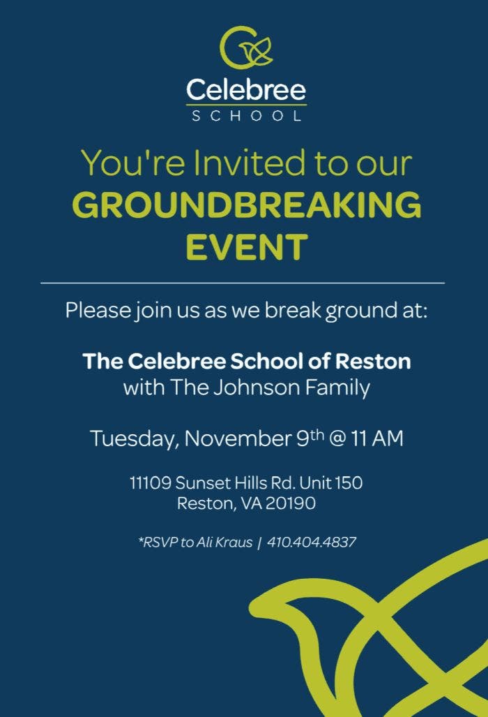 Celebree School is holding a groundbreaking event on Nov. 9 for a new preschool coming to Reston.