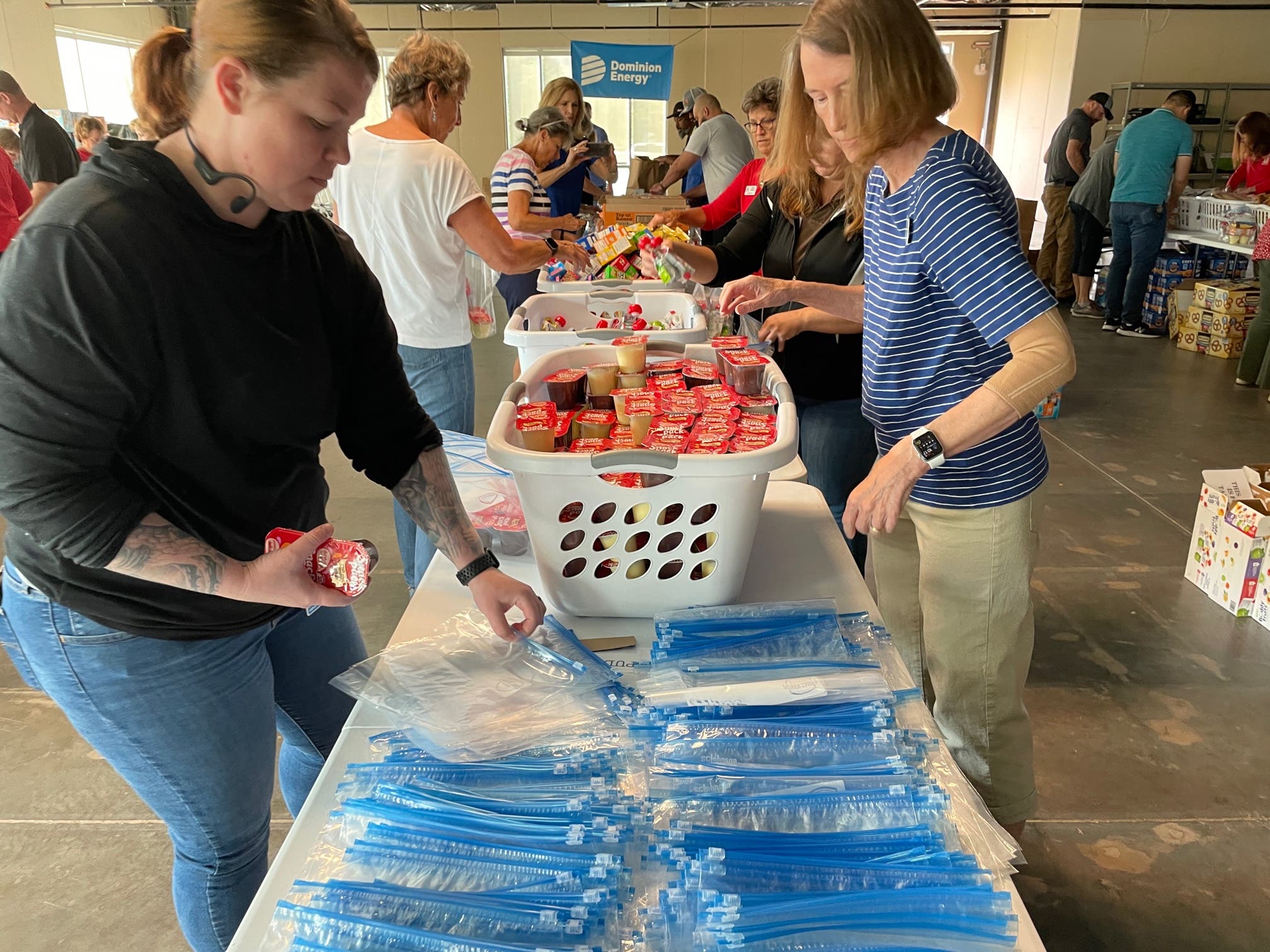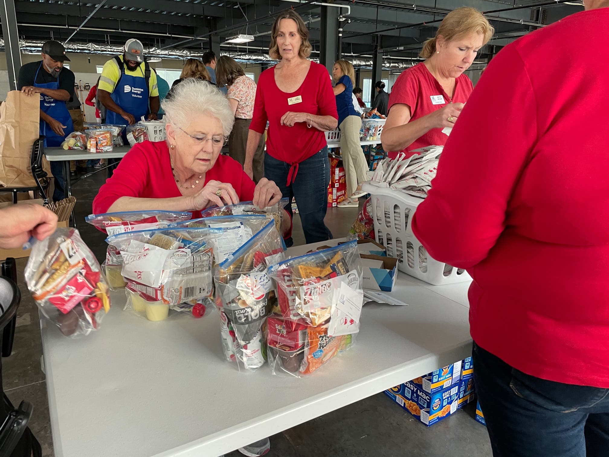 All of the Assistance League’s programs, including Weekend Food for Kids, are paid for via grants and financial donations. The nonprofit also relies on volunteers from companies like Dominion to help do the hands-on work.