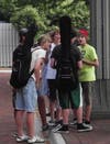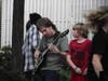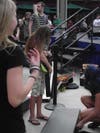 After her performance, fellow student rockers gathered around to congratulate her.