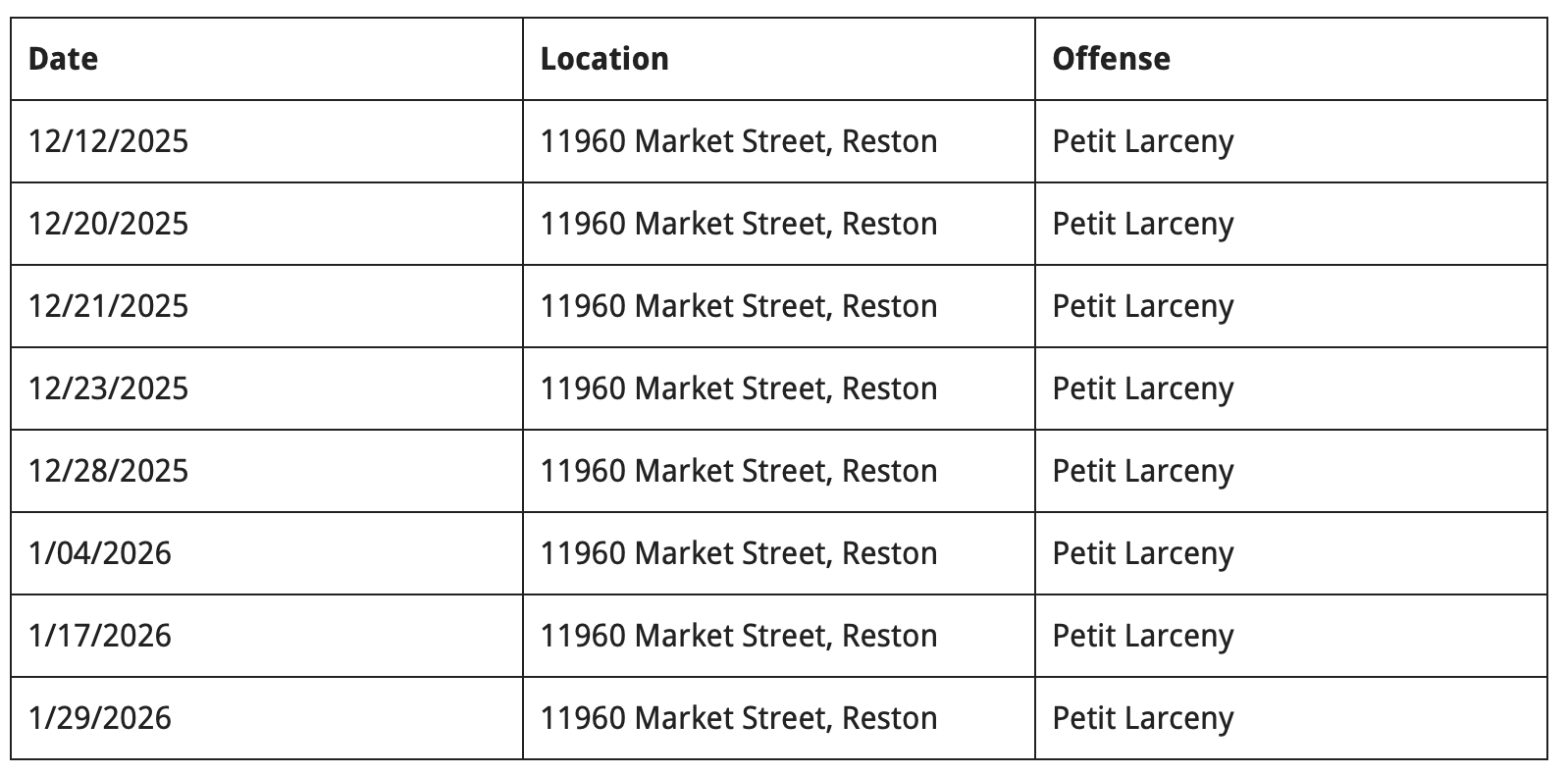 Officers with the Reston District Station’s Neighborhood Patrol Unit responded around 2:30 p.m. on Jan. 29 to investigate the report of a larceny at the Sephora at 11960 Market St.
