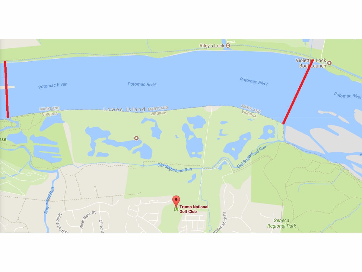 The restriction would cover a nearly two-mile stretch of the river where it borders Trump National Golf Club, located at Lowes Island. When Trump is there, that section will be totally shut down to kayakers, boaters, jet-skis, and anyone else who doesn't have authorization.