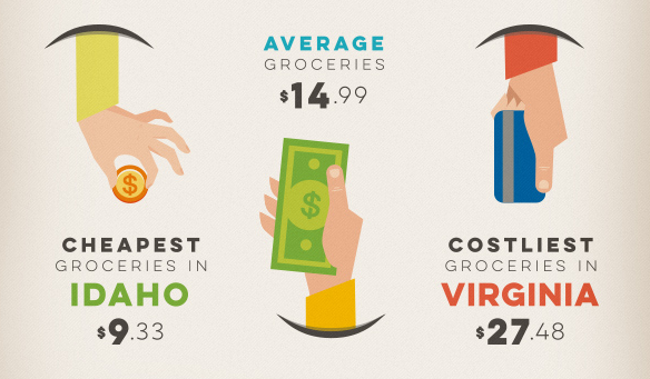 In some states, the cost of a meal’s worth of groceries is far more than $15. In Virginia, for example, you would need nearly $30 for the same amount of food you could get for less than $10 in Idaho.