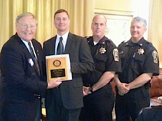PHOTO: (Pictured from left to right are: Rotarian George Creed, MPO Ken Smith, Chief James A. Morris and Deputy Chief Daniel Janickey) Photo courtesy of the Town of Vienna Police Department