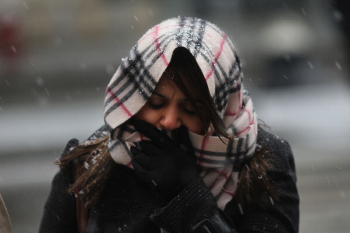 LEAD PHOTO: A woman walks through wind, snow and sleet in Manhattan. (Photo by Spencer Platt/Getty Images)